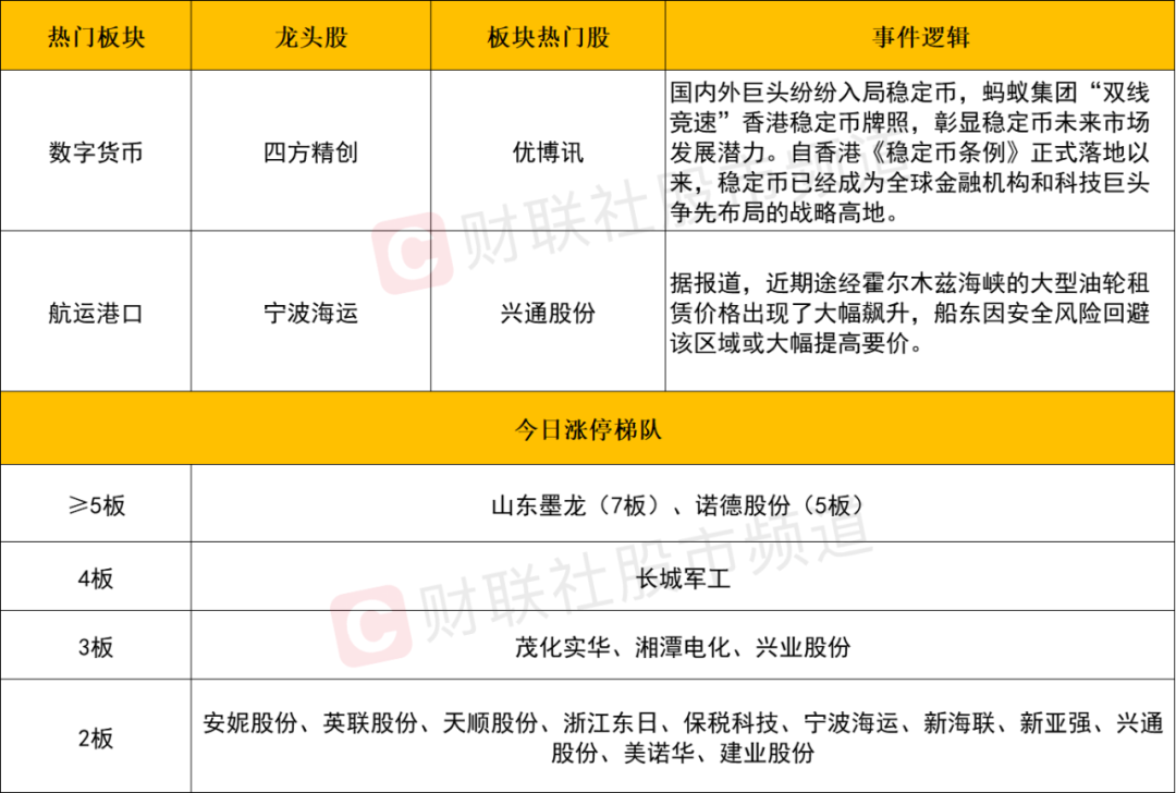 下午情绪回暖了,市场开始自由发挥。一边是油气、核电、港口、航运等打仗板块大涨,另一边是稳定币和创新药等热门题材,又开始狂飙!