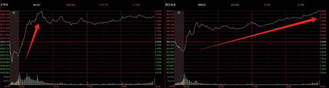 这个板块虽然屡创新高,但确实从一开始走的就非常拧巴,日内新高后,也带动了上周和他一起异动的题材,固态电池尾盘也大幅冲高。