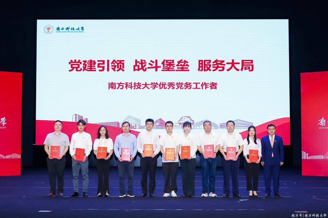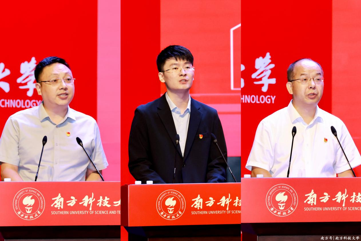 张凌宣读我校入选高校“双带头人”教师党支部书记“强国行”和“广东行”专项行动建设单位、广东省第五批党建“双创”工作培育创建单位名单,以及《中共南方科技大学委员会关于表彰2025年先进集体和先进个人的决定》。海洋科学与工程系教职工第一党支部入选全国高校“双带头人”教师党支部书记“强国行”专项行动建设单位;化学系第四党支部、电子与电气工程系第一党支部入选全省高校“双带头人”教师党支部书记“广东行”专项行动建设单位;理学院党委入选广东省第五批“党建工作标杆院系”培育创建单位;材料科学与工程系教职工第二党支部、量子科学与工程研究院教职工第二党支部、电子与电气工程系第一党支部、地球与空间科学系学生第一党支部、生物医学工程系第一党支部入选广东省第五批“党建工作样板支部”培育创建单位。在校级表彰中,刁昱文等100名同志被评为优秀共产党员,丁克蜜等100名同志被评为优秀党务工作者,机关党委等52个党组织被评为先进基层党组织。