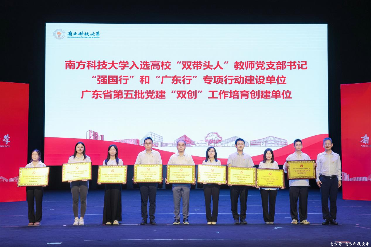 姜虹、薛其坤、张凌分别为先进基层党组织、优秀共产党员、优秀党务工作者颁奖。校党委副书记、纪委书记、监察专员姚文胜为我校入选高校“双带头人”教师党支部书记“强国行”和“广东行”专项行动、广东省第五批党建“双创”工作培育创建单位的基层党组织颁奖。
